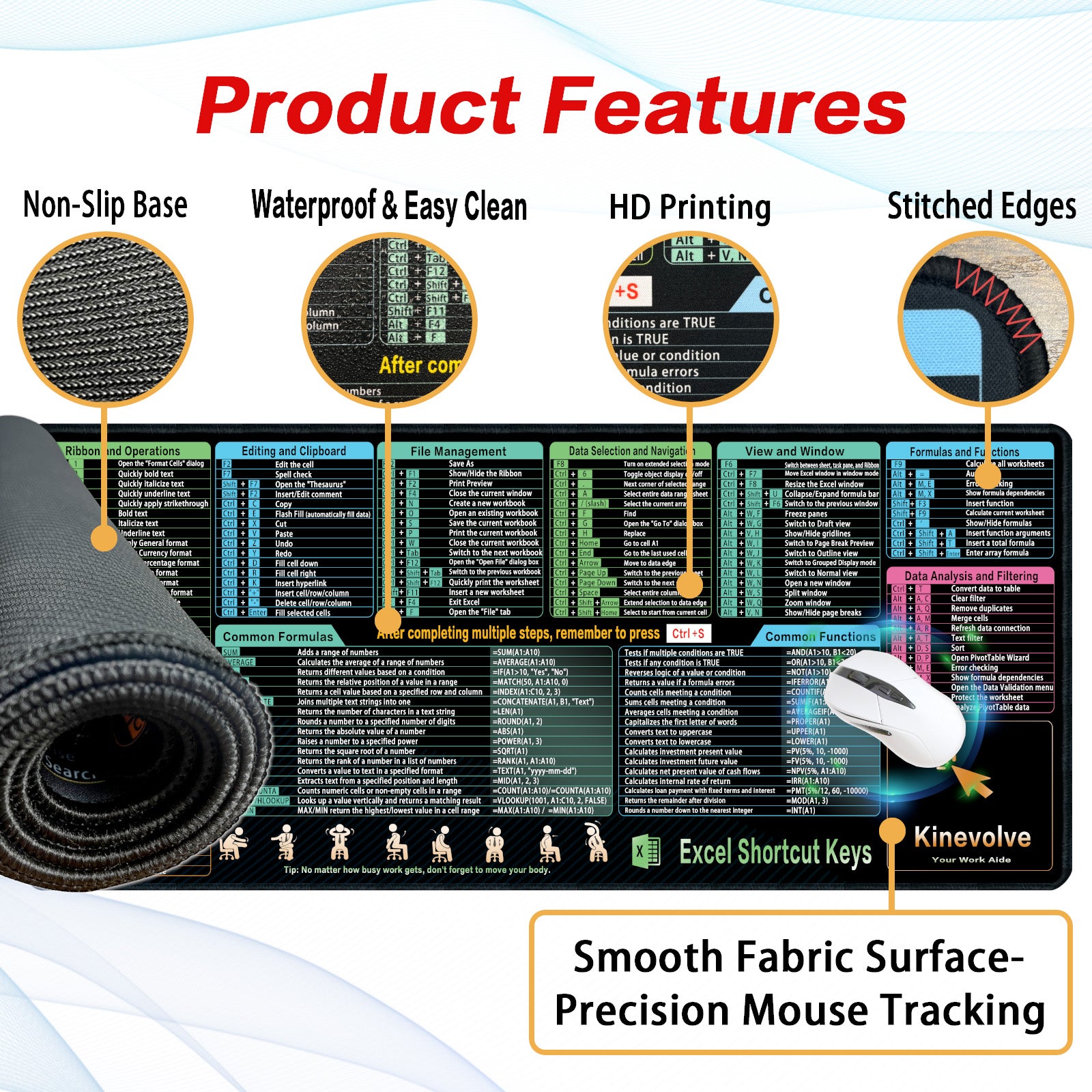- Organized Excel References: Shortcuts, formulas, and functions for Excel are clearly categorized, making this desk mat easy to navigate while working on spreadsheets, data analysis, or financial tasks.